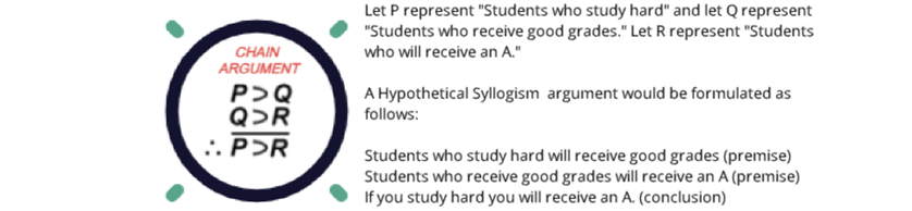 What follows are four common patterns or "blueprints" for constructing deductive arguments. If you follow the "blueprints" and accept the premises, you must accept the conclusions.